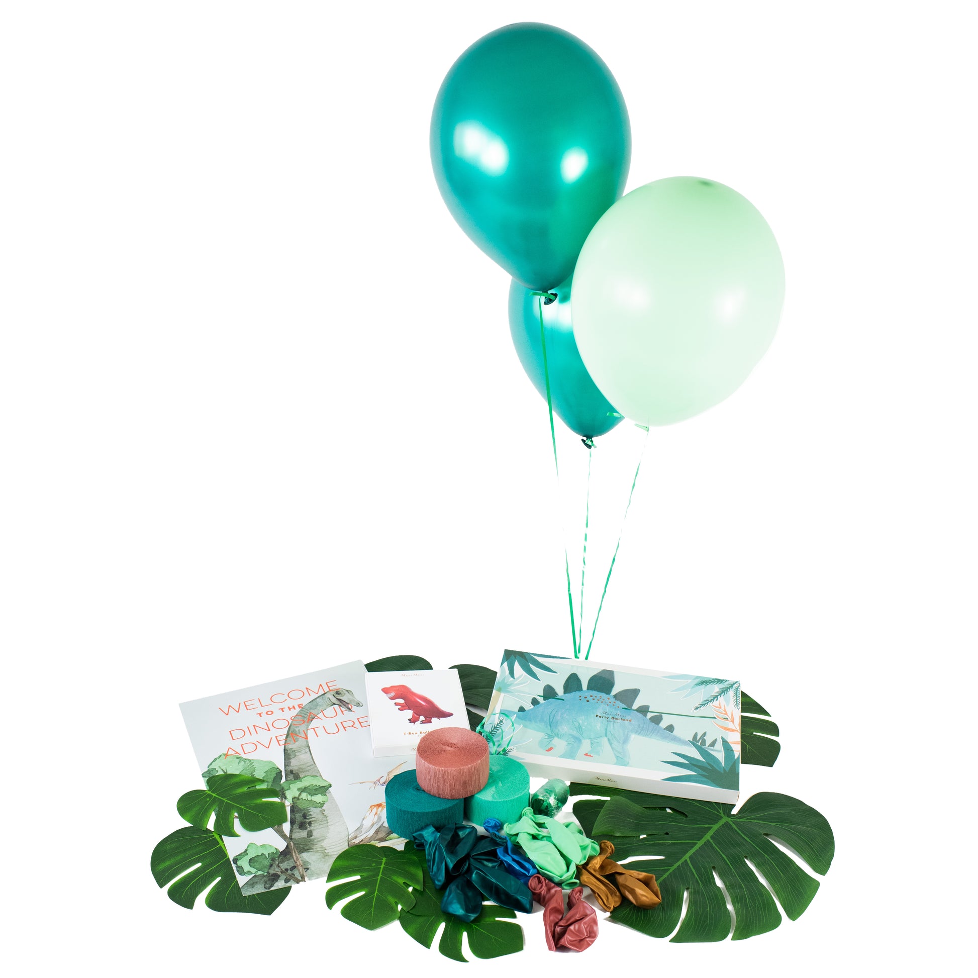 From the moment guests arrive, they'll be transported back in time by the welcoming Dinosaur Adventure sign. Vibrant latex balloons in jungle shades transform any room, complemented by a towering T-Rex foil balloon that's sure to be a jaw-dropping centerpiece.