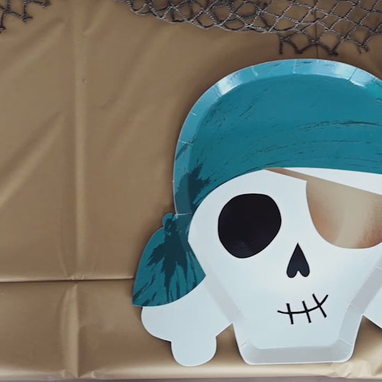 This swashbucklin' Pirates Party Kit has everything you need to throw a buccaneer bash to remember. Transform your home into a pirate's cove with themed decorations that set the stage for high seas hijinks. Recruit a spirited pirate crew of up to 8 kids (ages 4-8) to embark on a treasure hunting mission with 8 rip-roarin' themed games and activities. When the plundered loot is secure, celebrate your hard-earned bounty with pirate-inspired tableware.